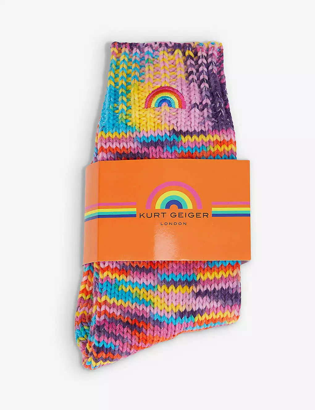 KURT GEIGER LONDON Be Kind Rainbow-embroidered Knitted Socks For Womens Mult/other