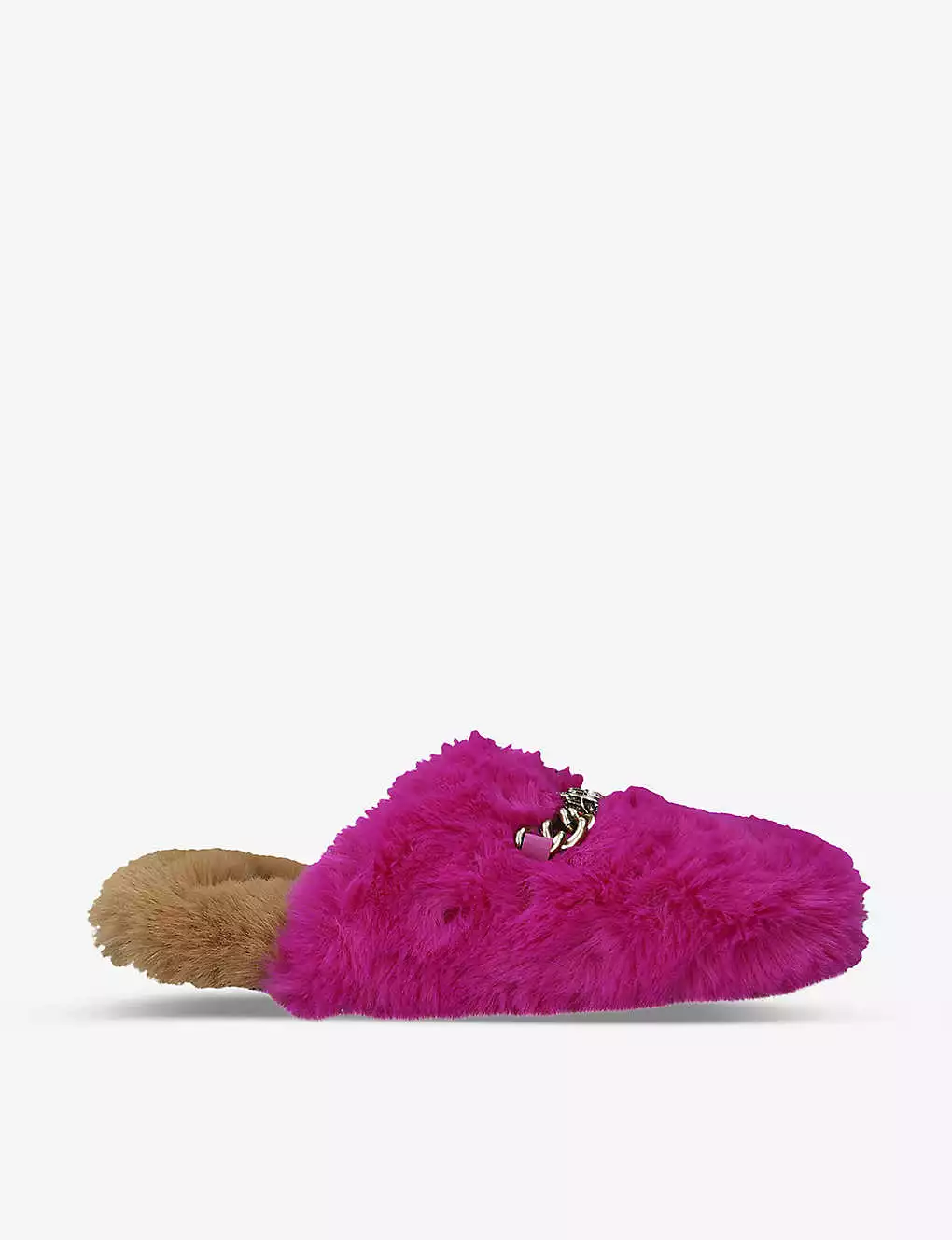 KURT GEIGER LONDON Chelsea Chain And Eagle-motif Faux-fur Slippers For Womens Camel/comb