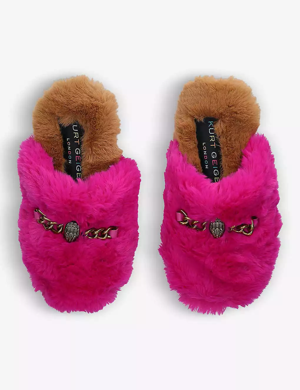 Be the first to review “KURT GEIGER LONDON Chelsea Chain And Eagle-motif Faux-fur Slippers For Womens Camel/comb” Cancel reply