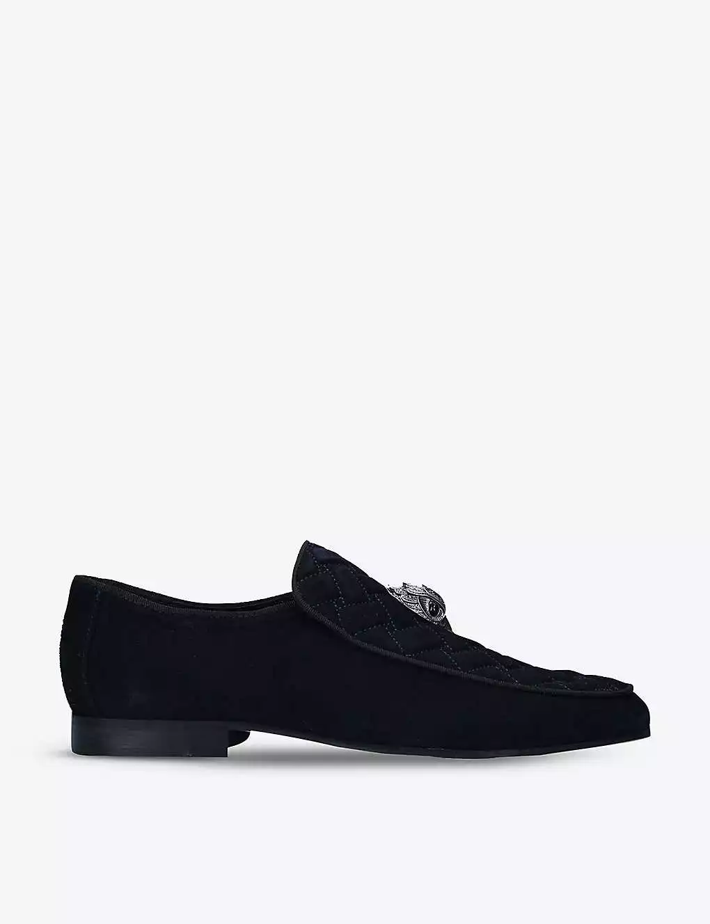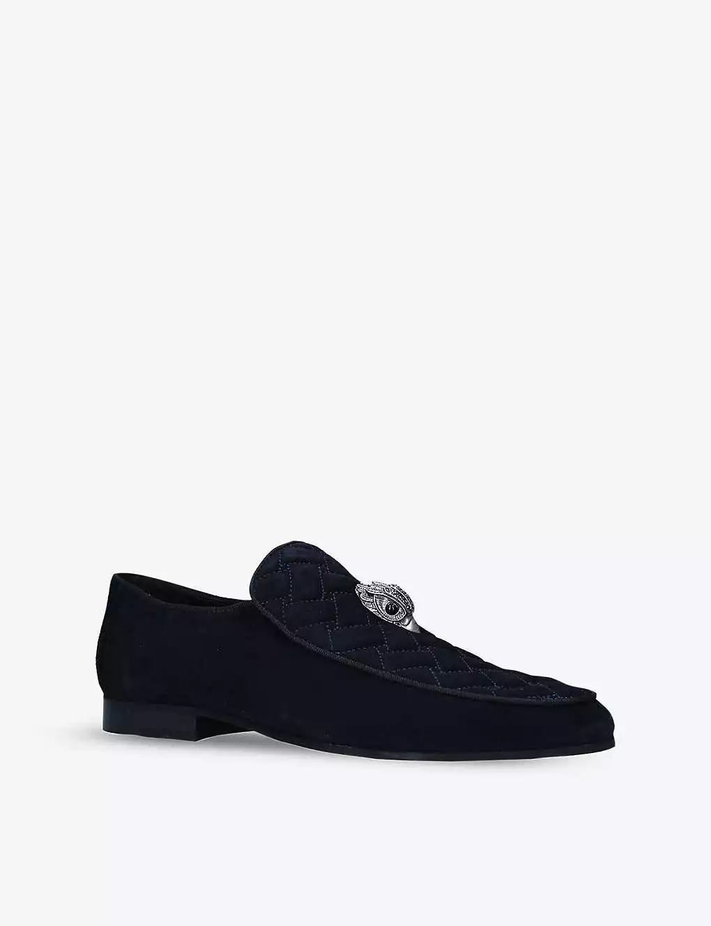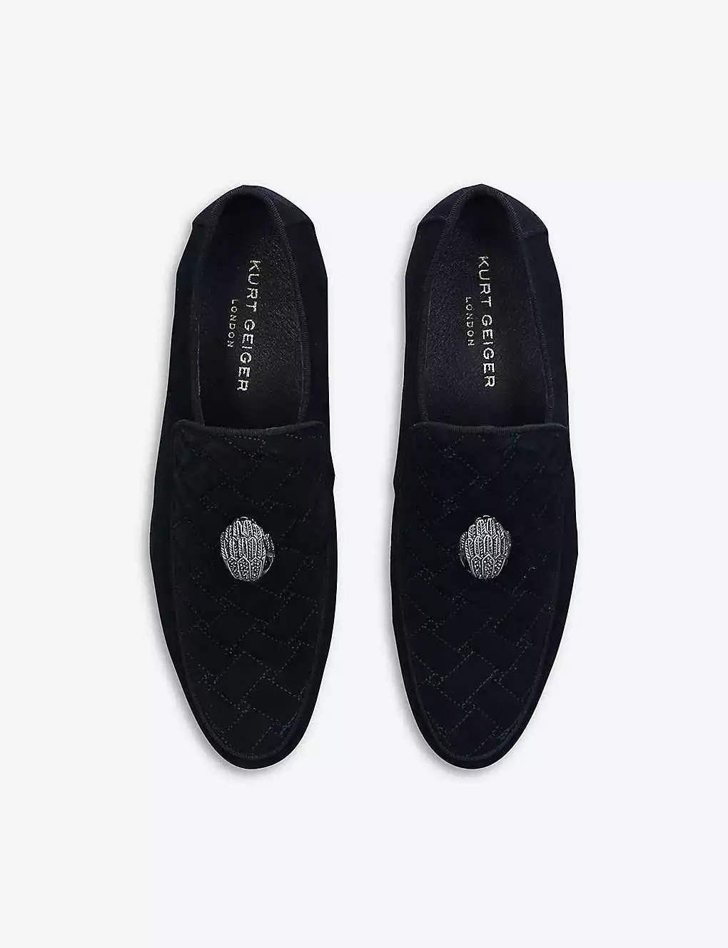 KURT GEIGER LONDON Hugh Eagle Embellished Quilted Suede Loafers Navy