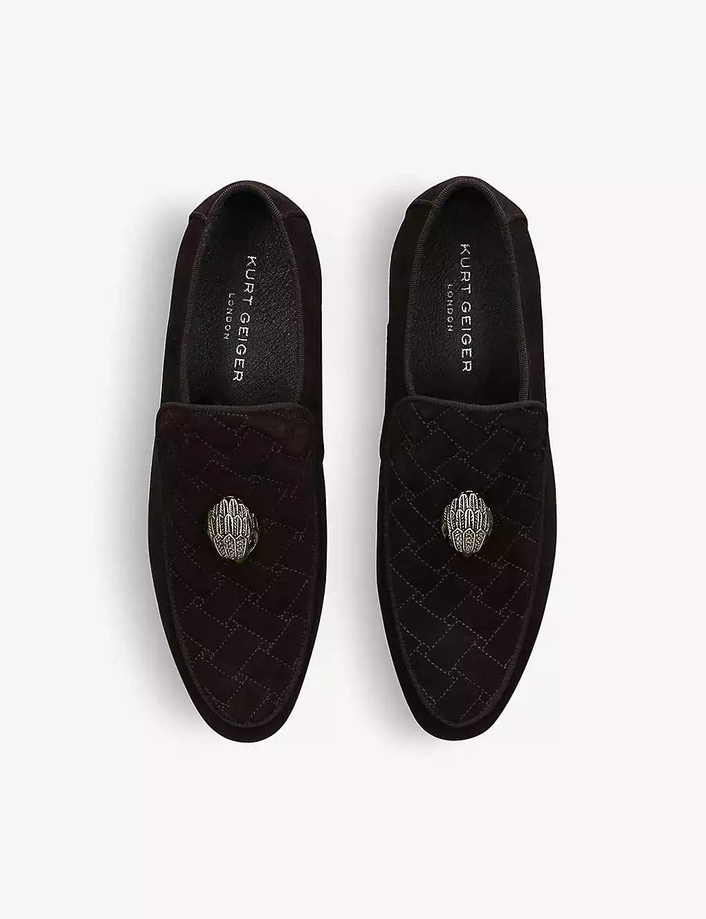 KURT GEIGER LONDON Hugh Eagle Head Embellished Suede Loafers Brown