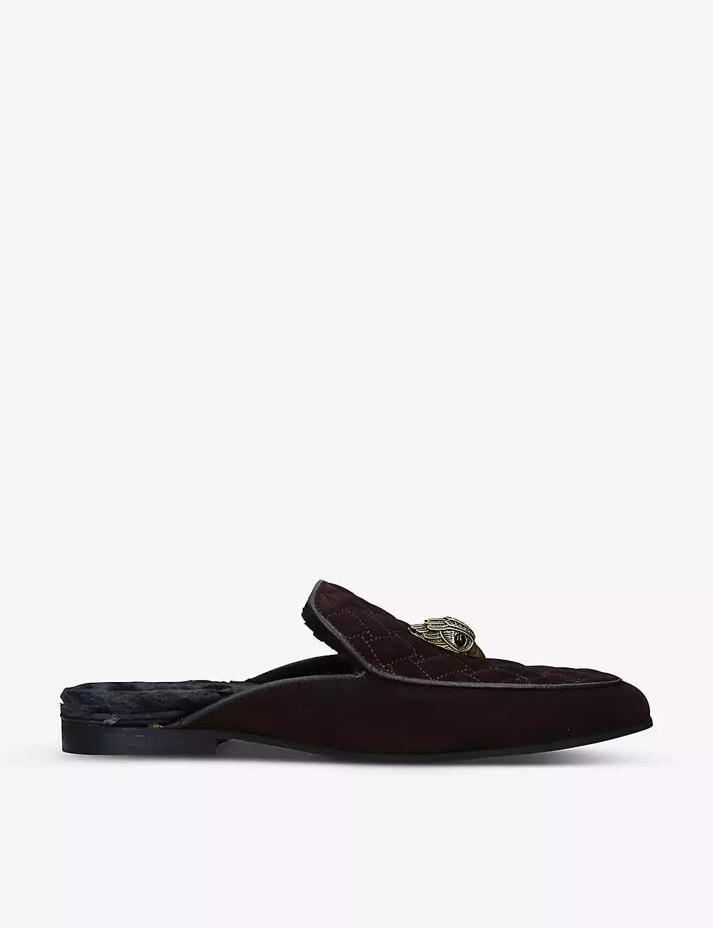- Almond toe, quilted upper, Eagle emblem on front, backless, branded insole
