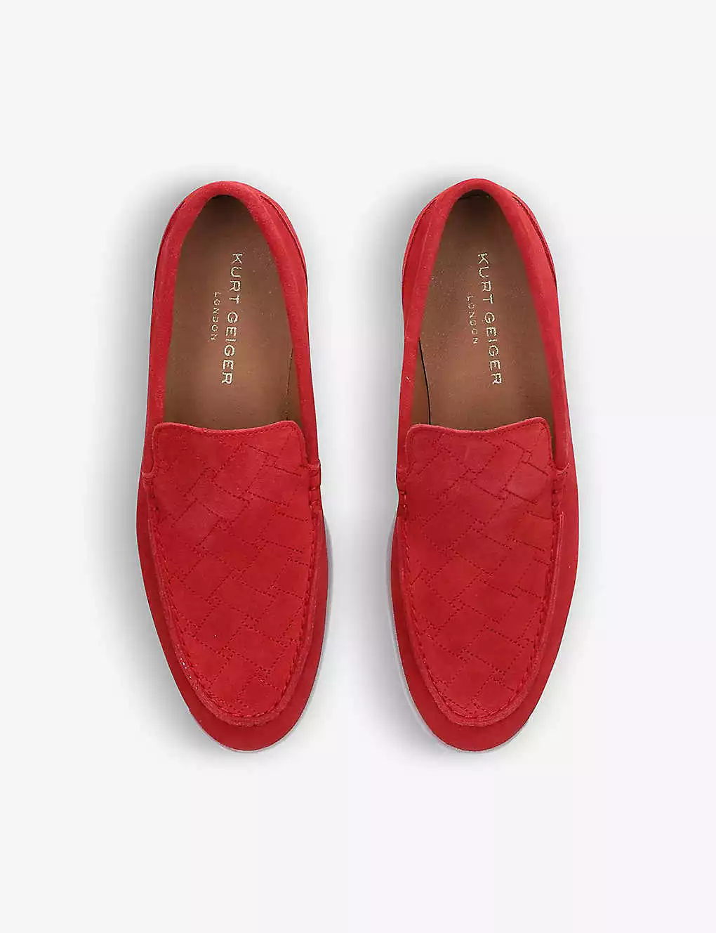 KURT GEIGER LONDON Hugo Quilted Suede Loafers Red