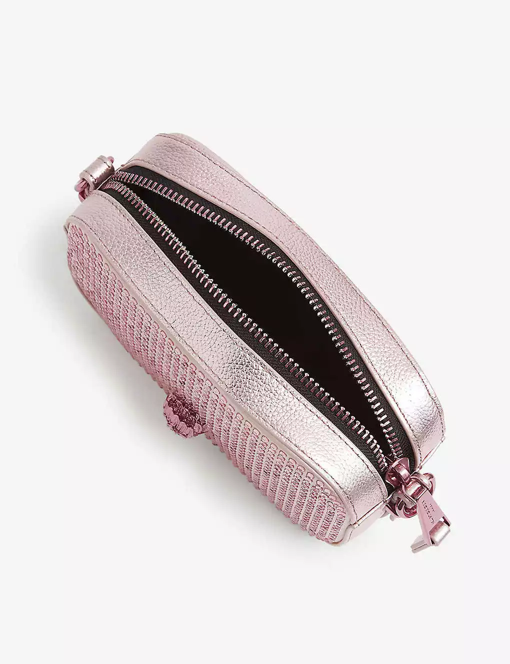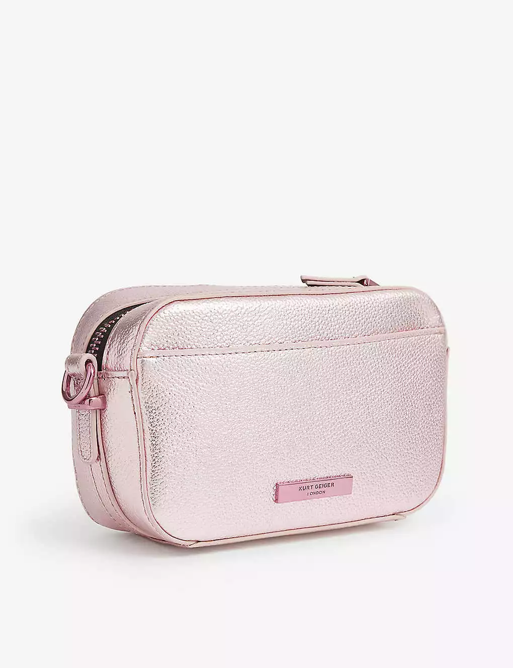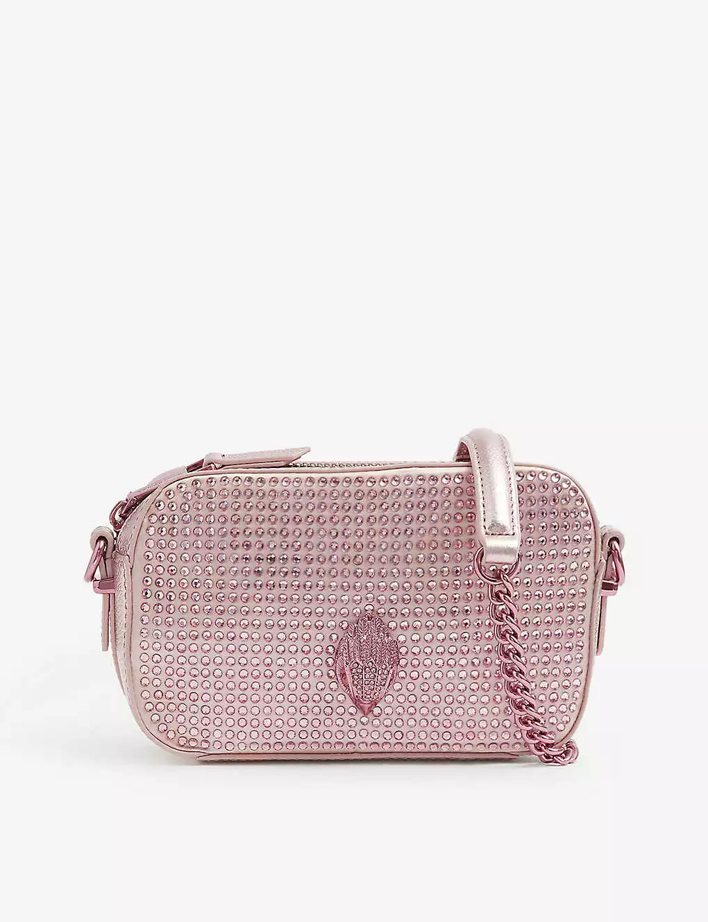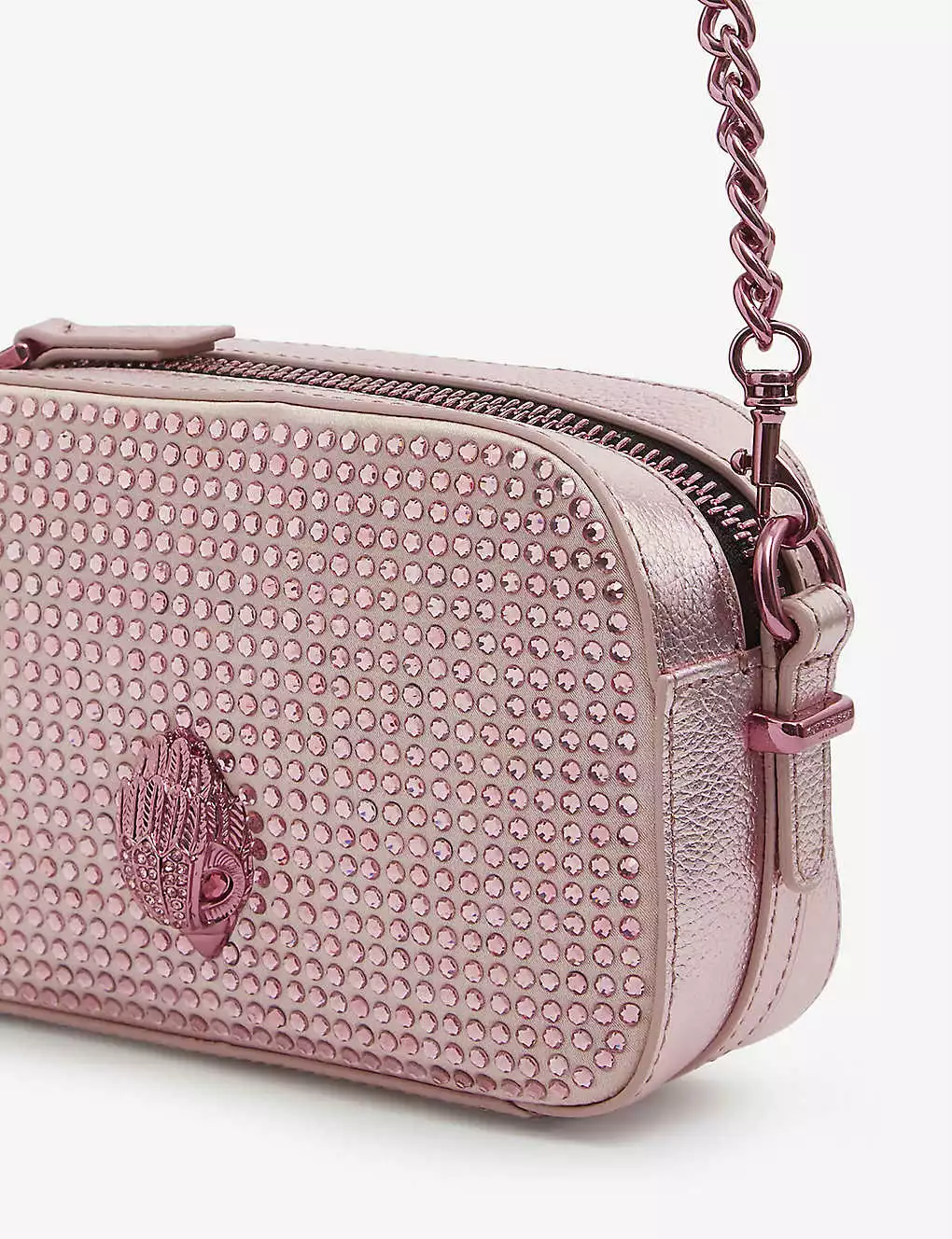 KURT GEIGER LONDON Kensington Crystal-embellished Metallic-leather Cross-body Camera Bag For Womens Pink