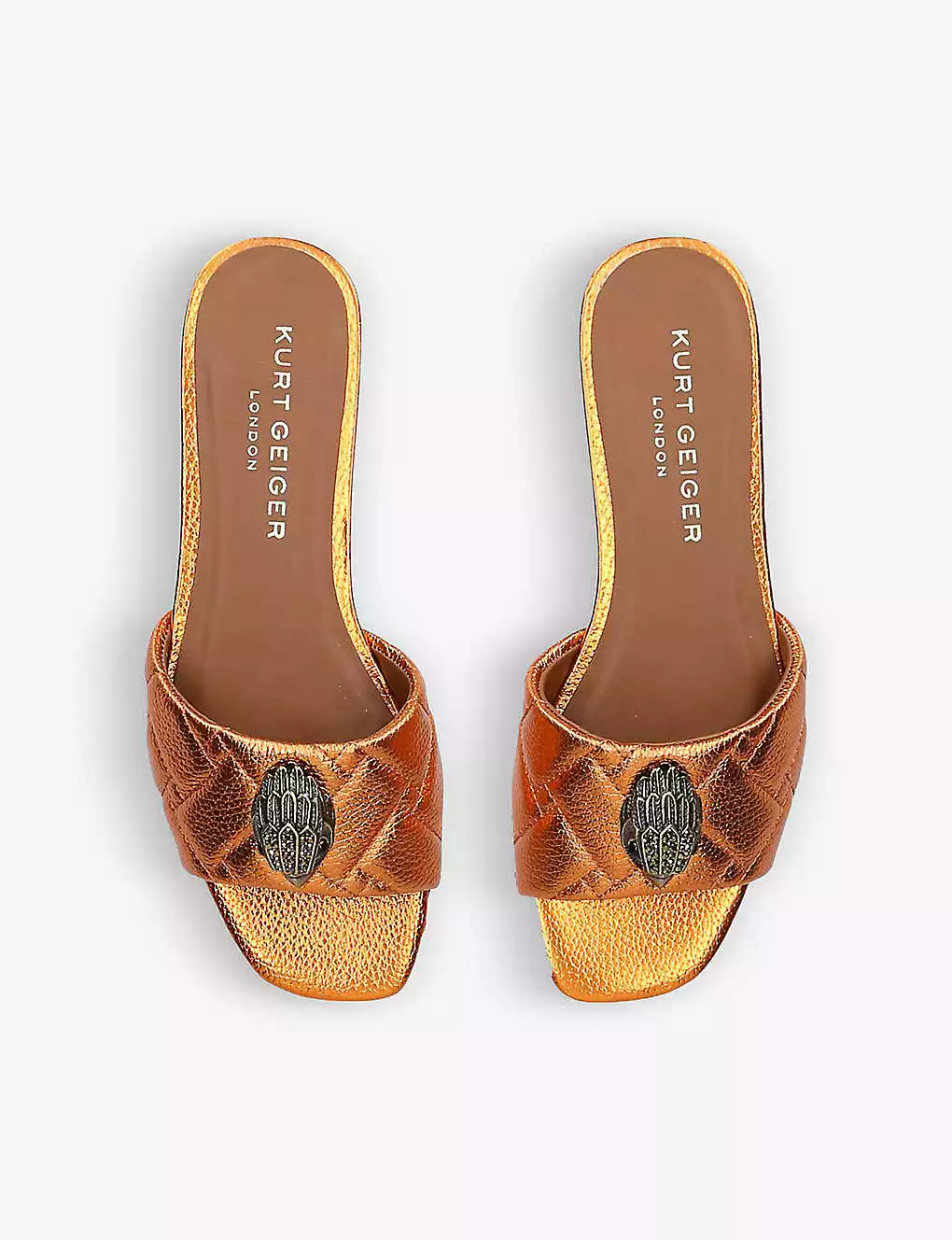 KURT GEIGER LONDON Kensington Eagle-embellished Quilted Metallic-leather Mules For Womens Orange
