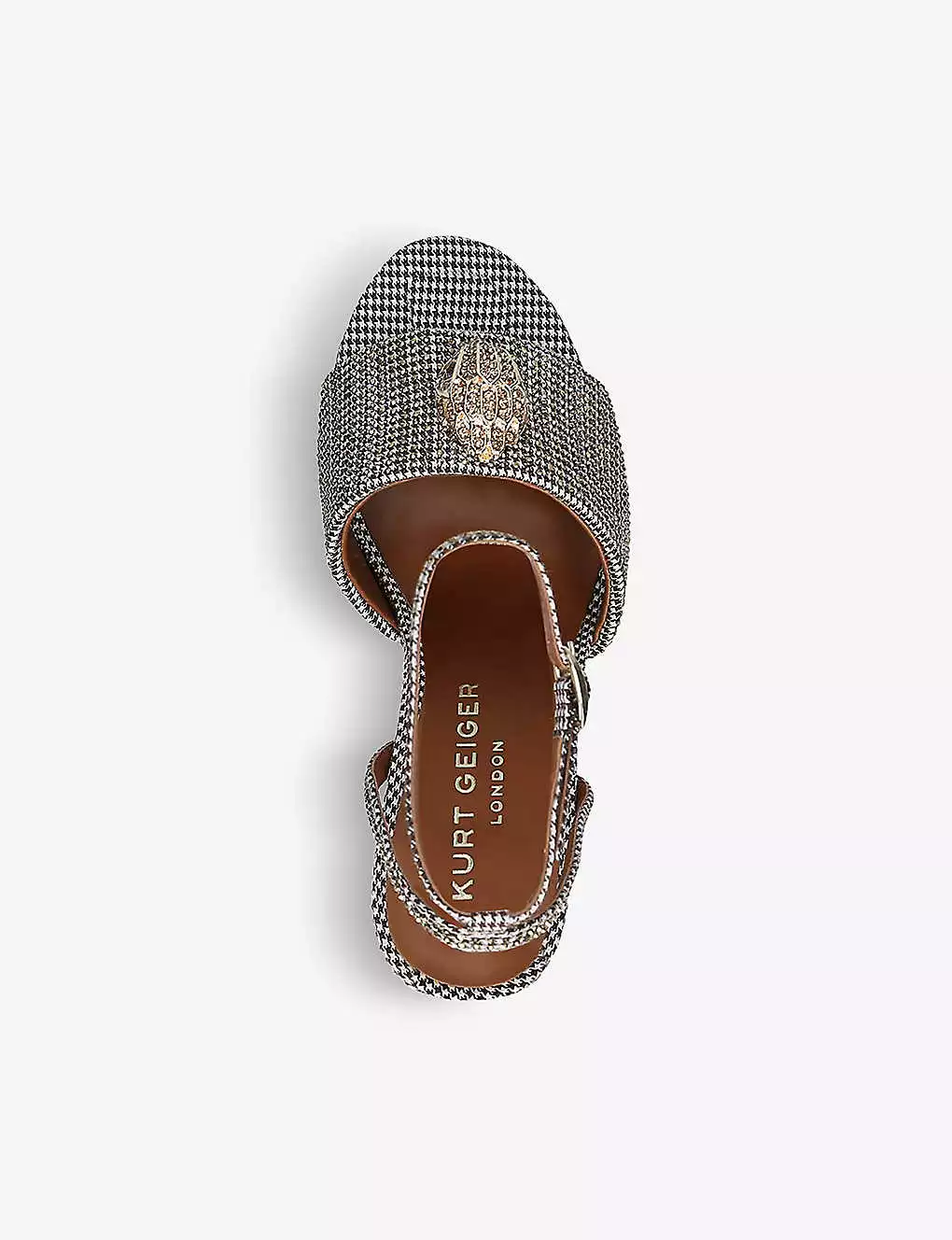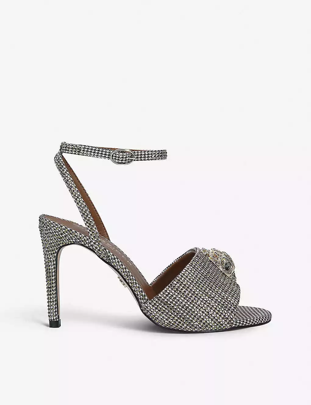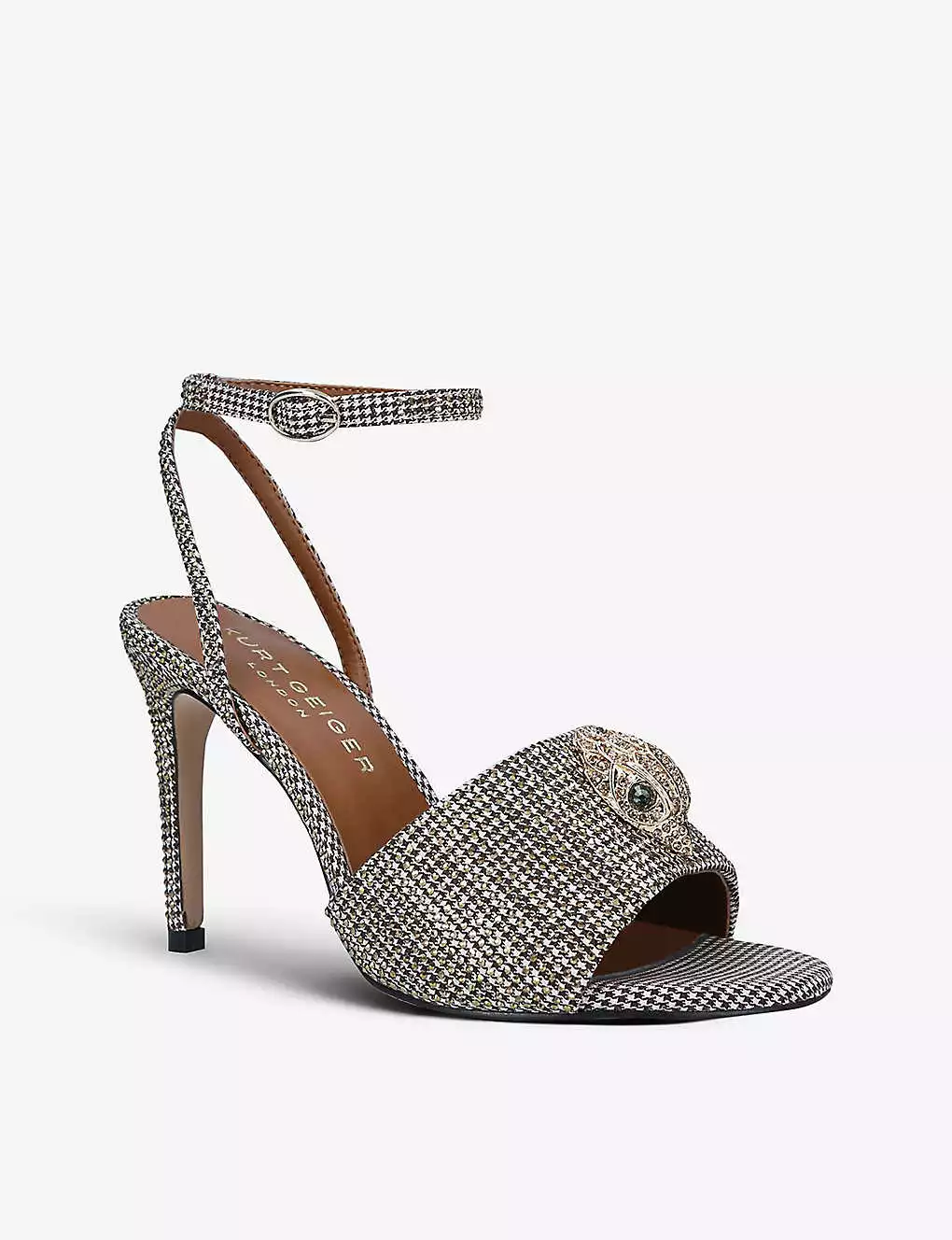 KURT GEIGER LONDON Kensington Hounds Tooth Check Embellished Heeled Sandals For Womens Beige