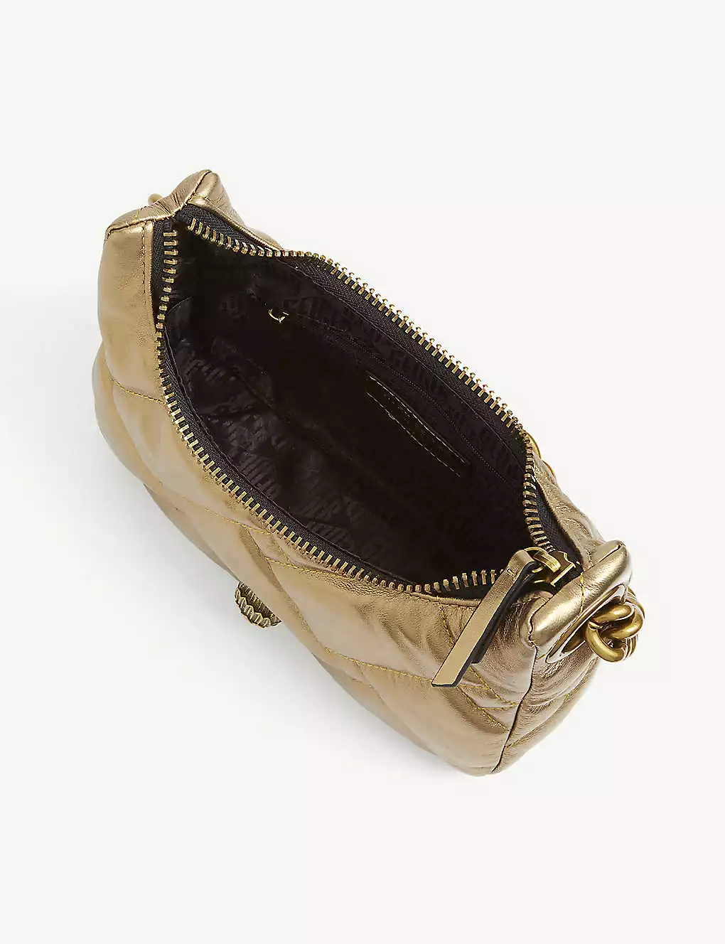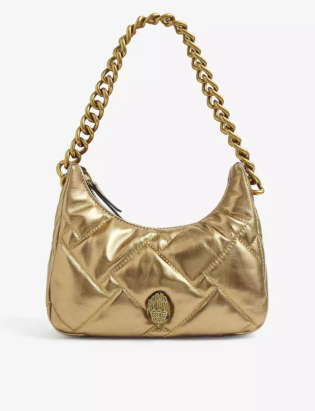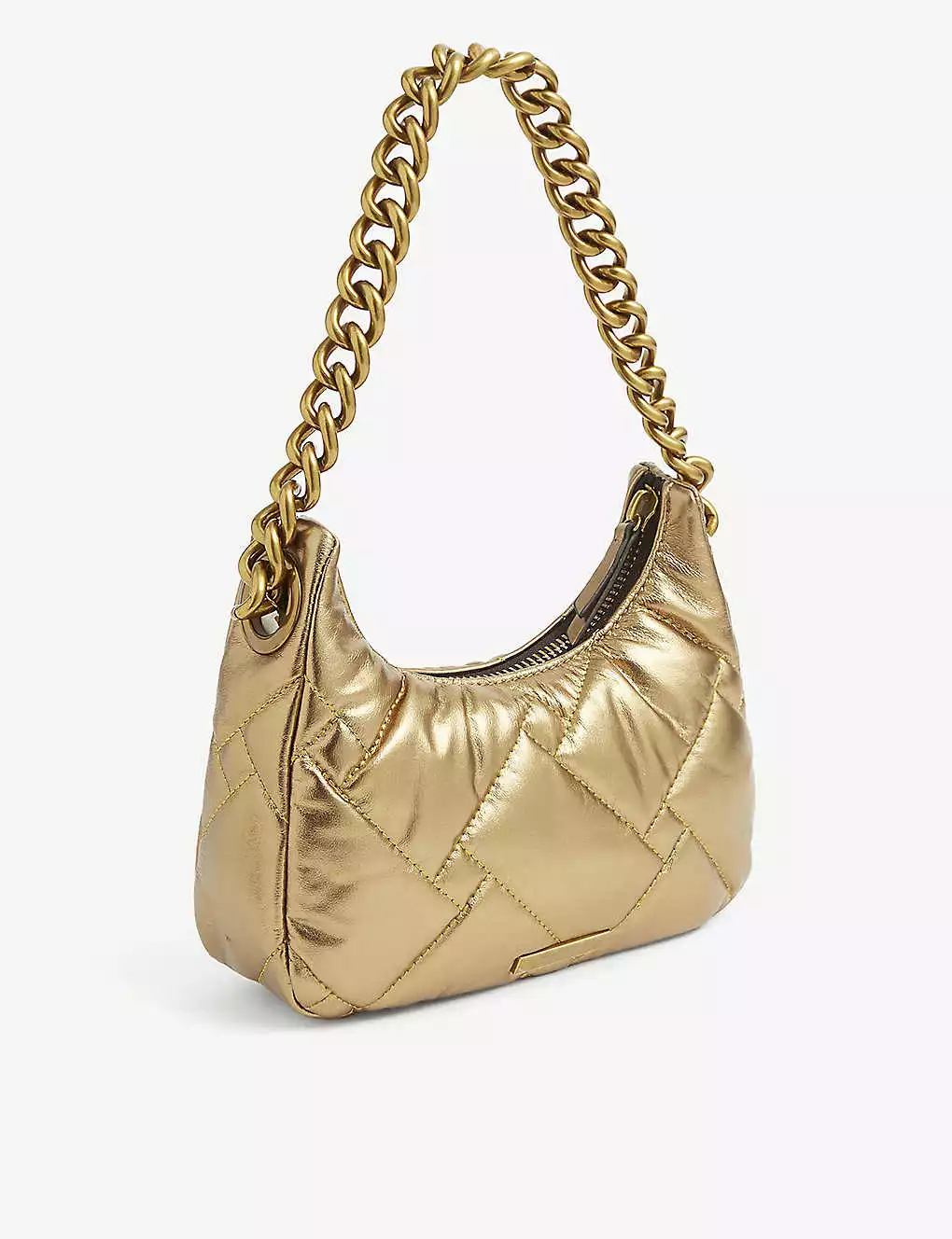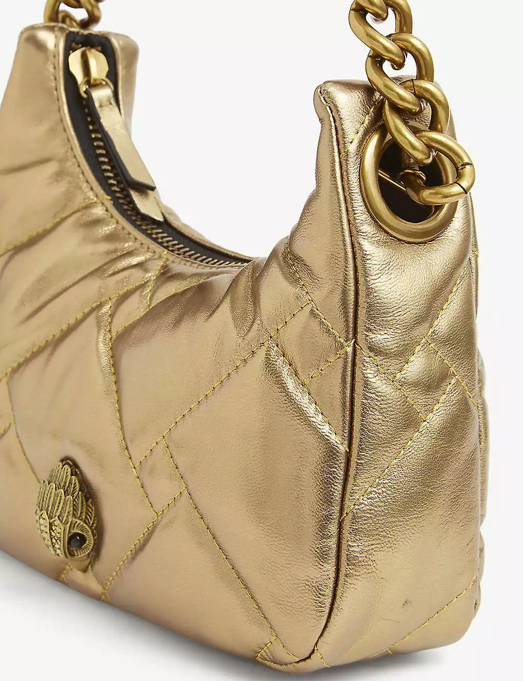 KURT GEIGER LONDON Kensington Soft Hobo Quilted Metallic Leather Shoulder Bag For Womens Gold