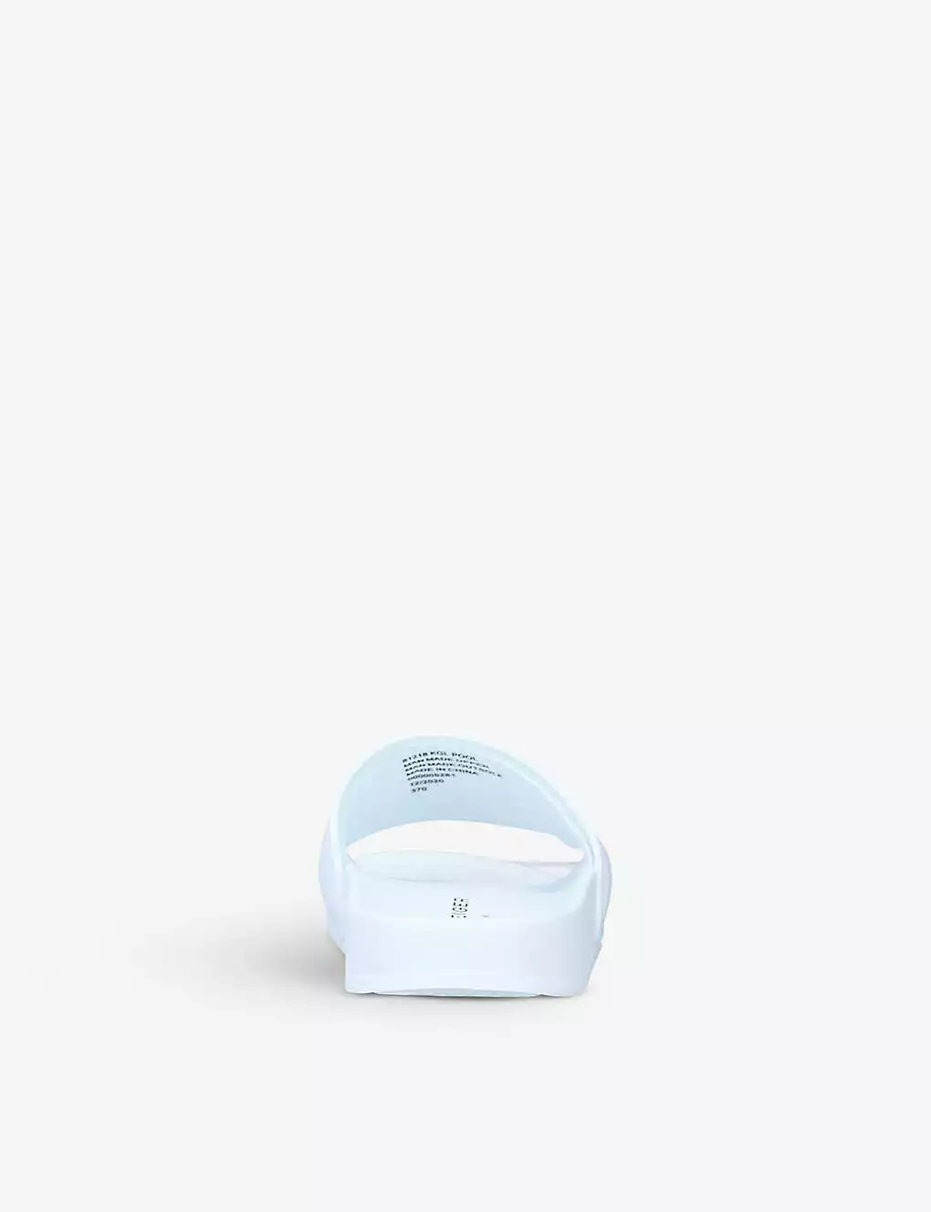 - Open round toe, contrast branding embossed at front strap, curved outsole