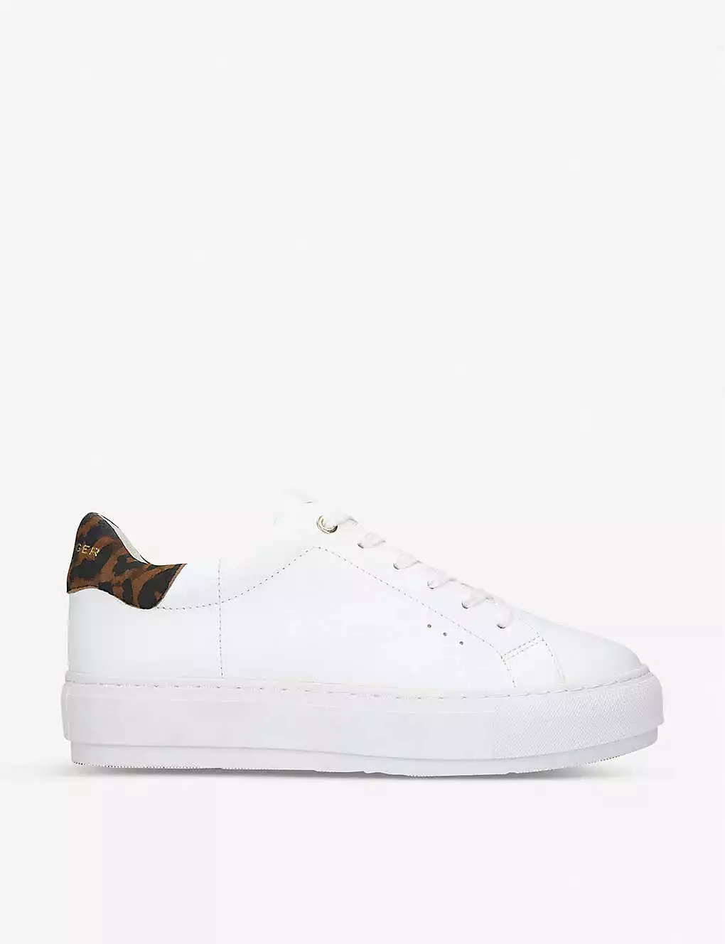 KURT GEIGER LONDON Laney Leopard-print Leather Platform Trainers For Womens Cream Comb