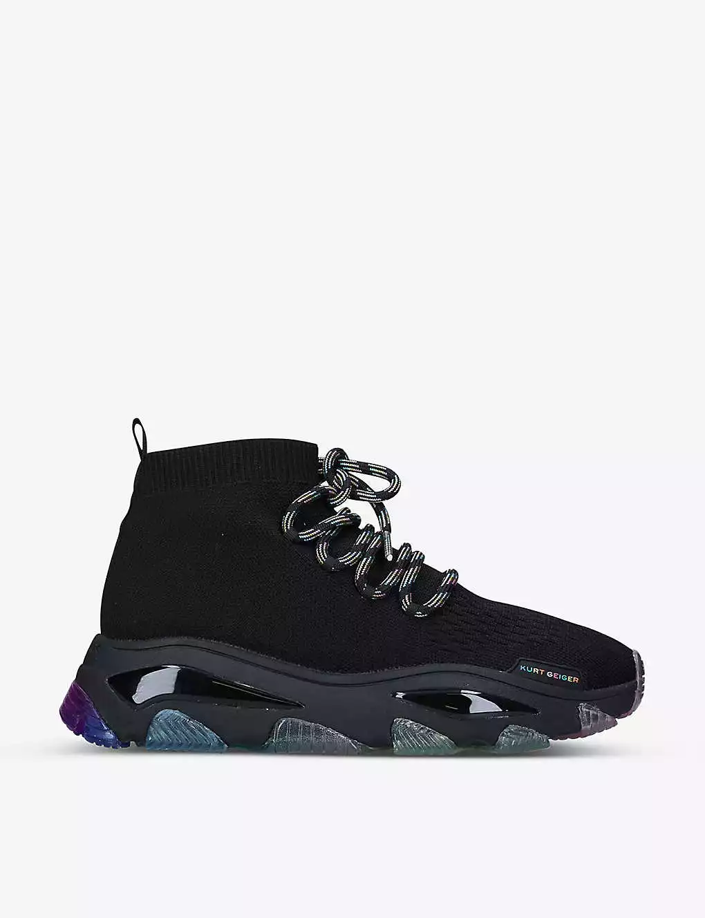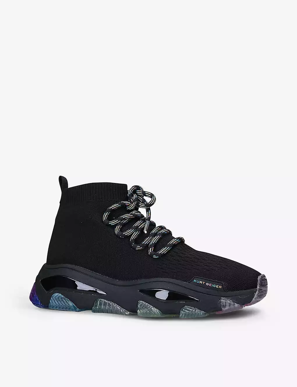 KURT GEIGER LONDON Lettie Contrasting-insert Knitted Sock Trainers Black/comb