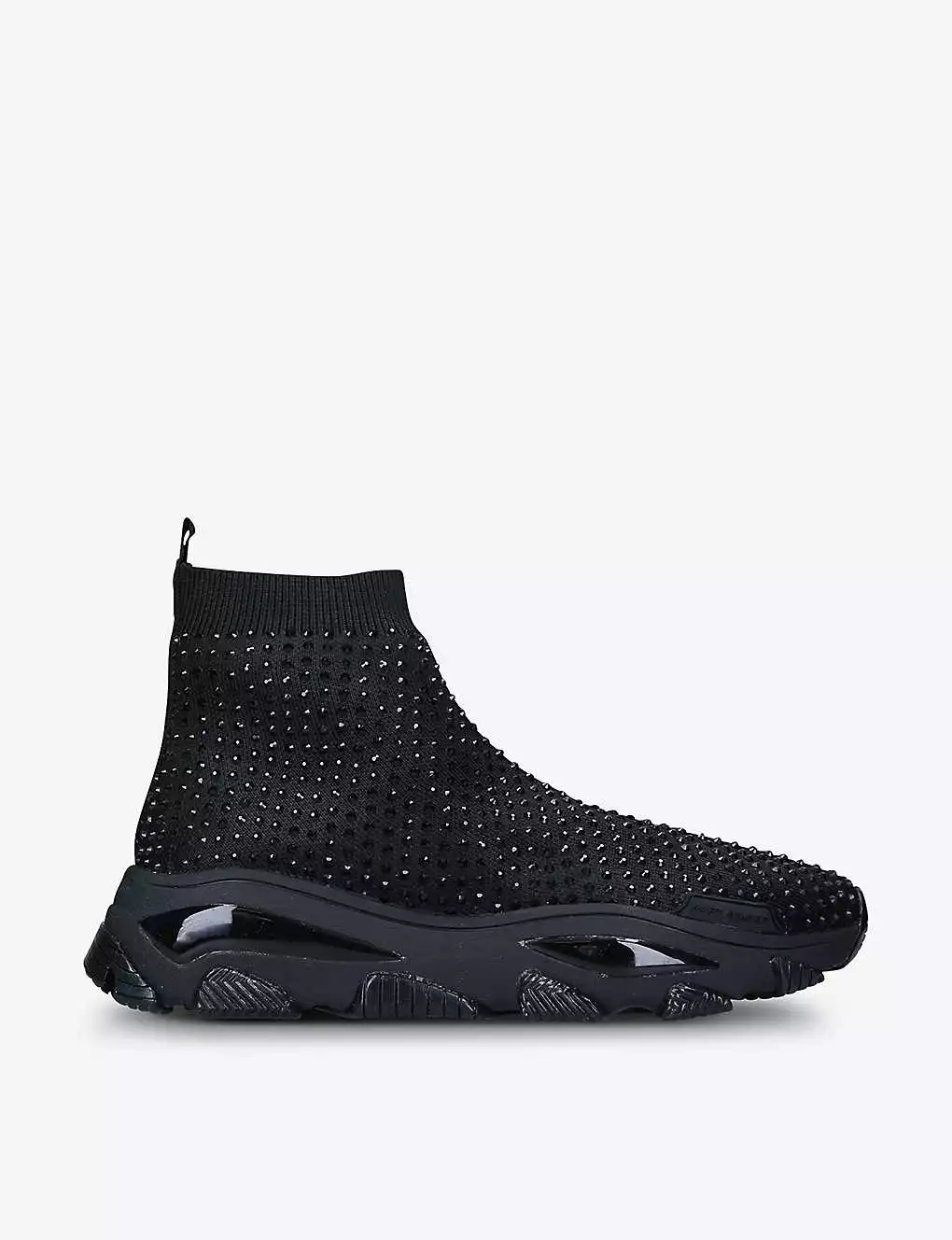 KURT GEIGER LONDON Lettie Crystal-embellished Knitted High-top Sock Trainers Blk/other