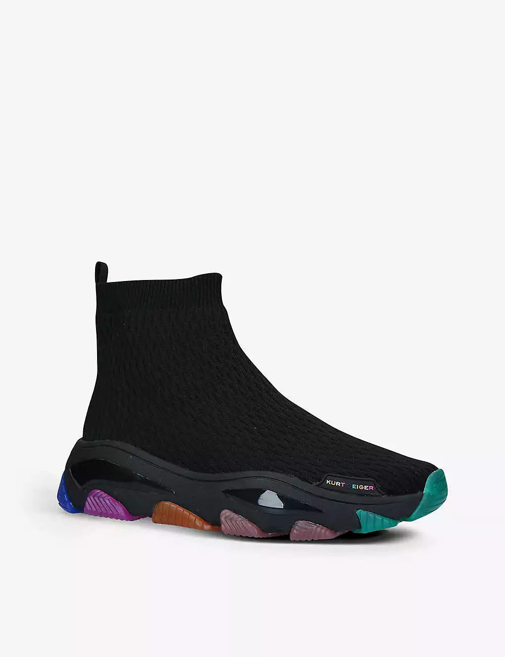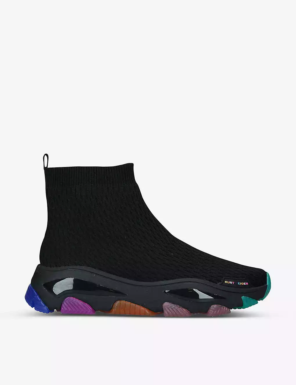 KURT GEIGER LONDON Lettie Knit Rainbow-inset Textile Trainers Black/comb