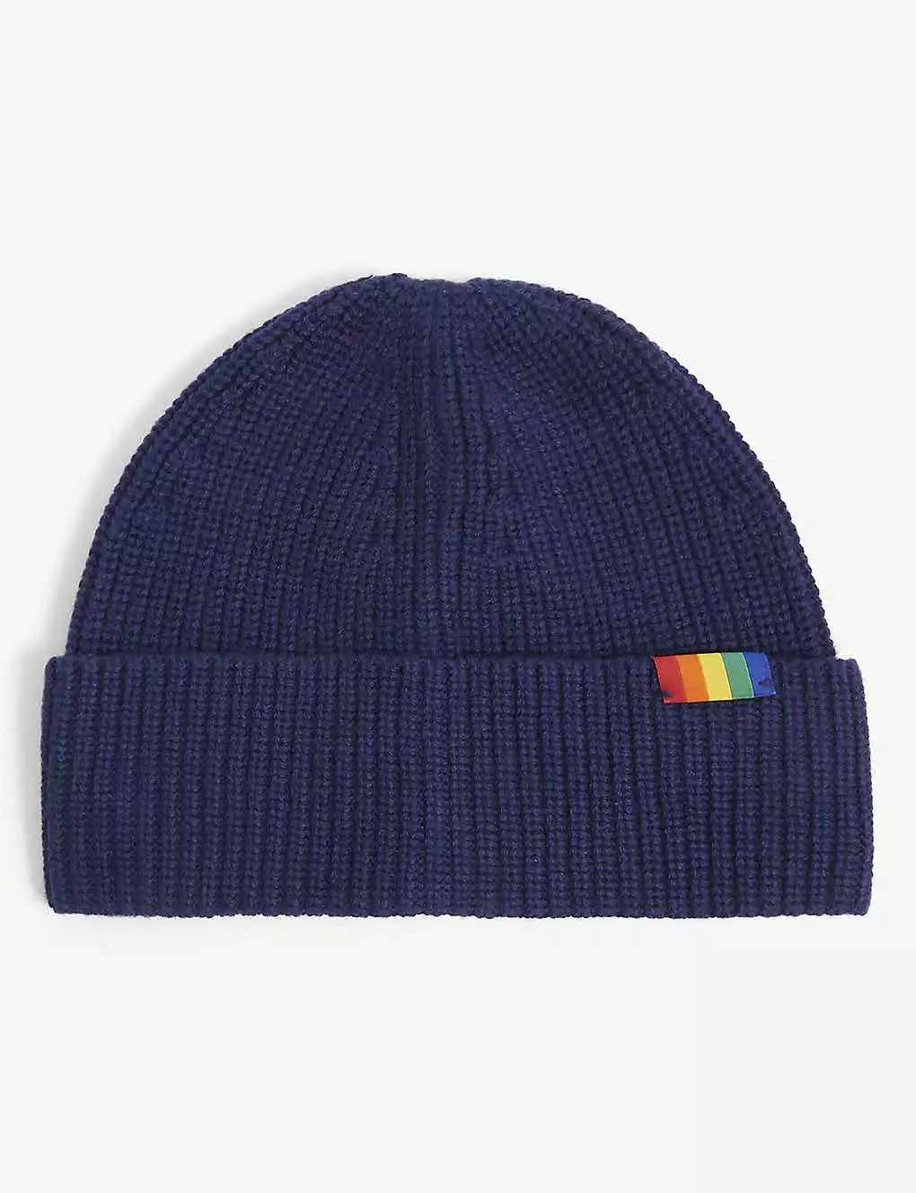 KURT GEIGER LONDON Logo-patch Cotton-blend Beanie For Womens Navy