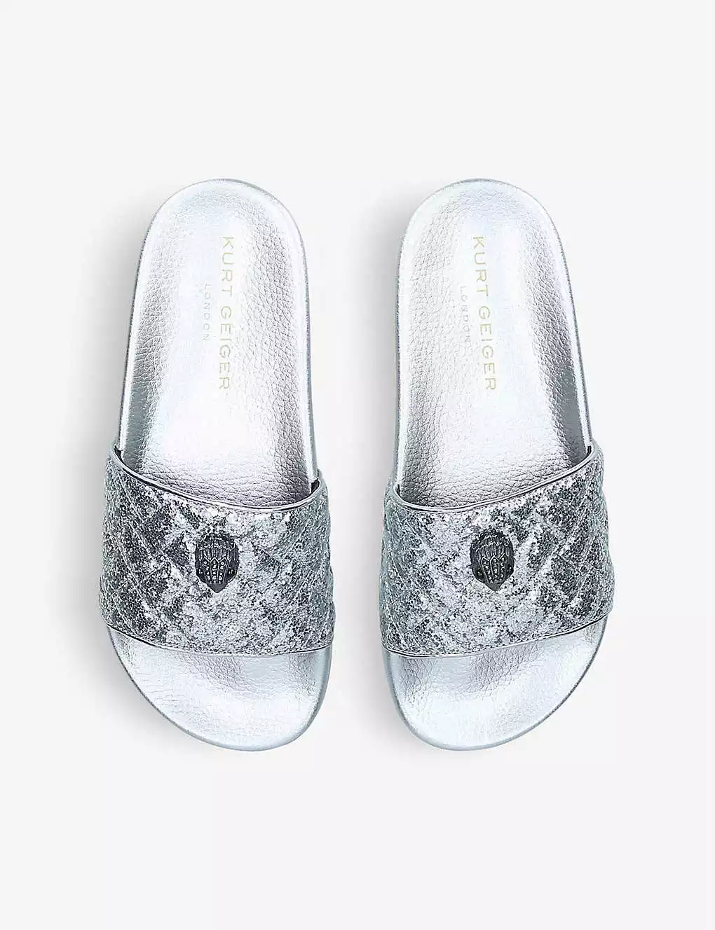 KURT GEIGER LONDON Meena Eagle Metallic Sliders Silver
