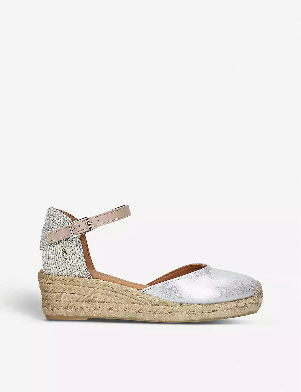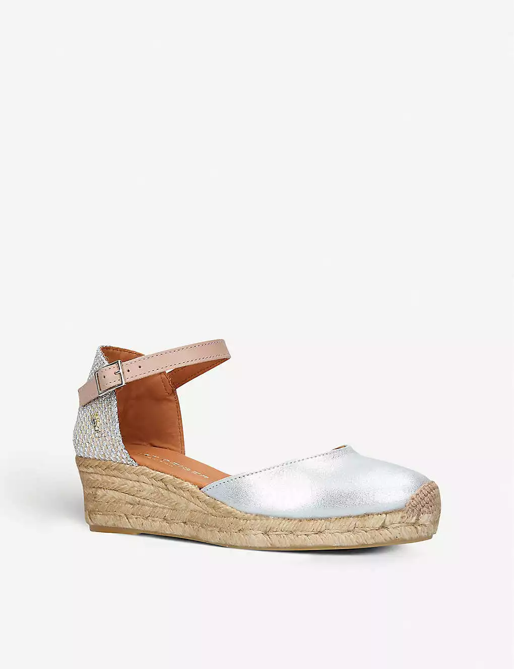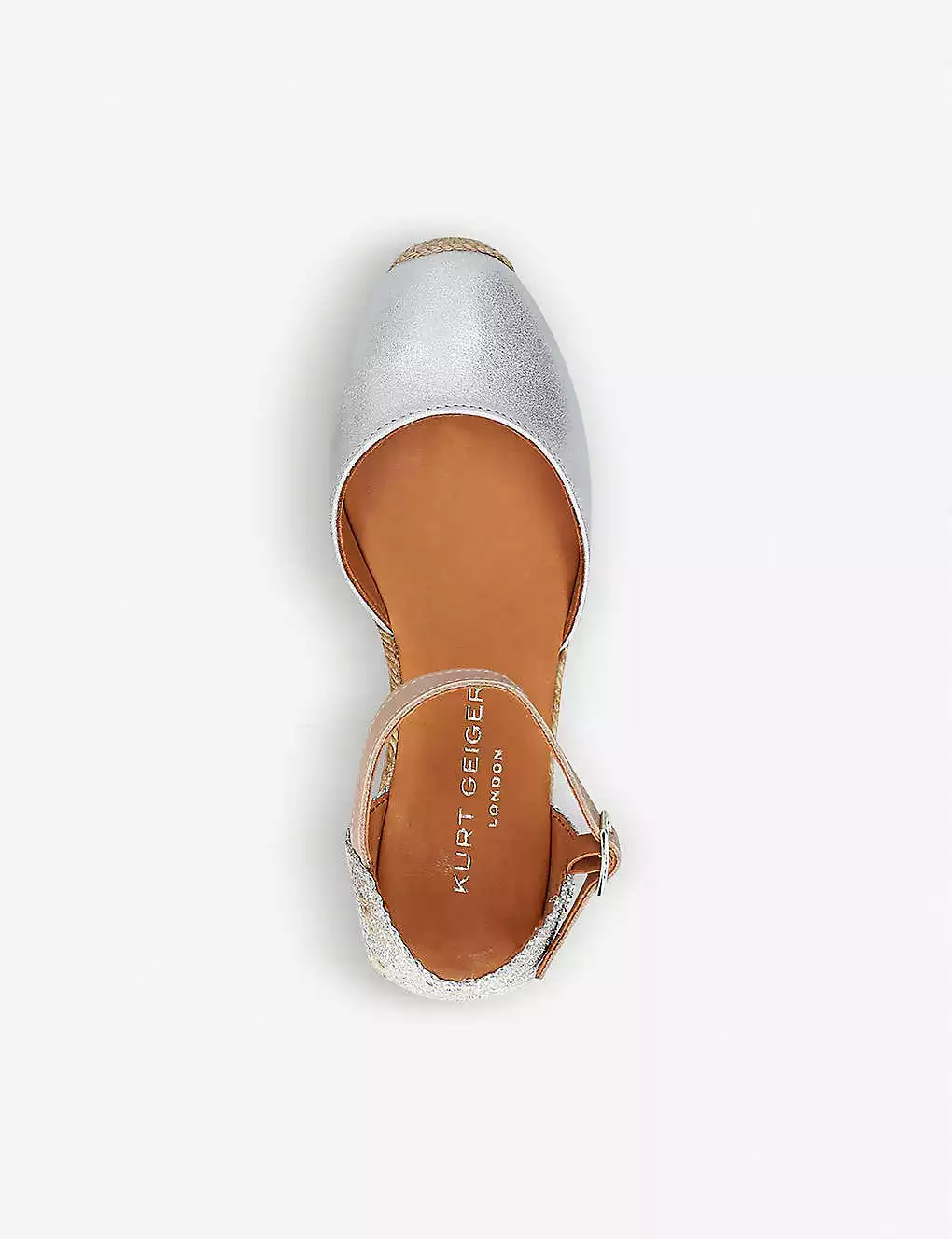 KURT GEIGER LONDON Minty Metallic Leather And Raffia Espadrille Wedge Sandals For Womens Silver