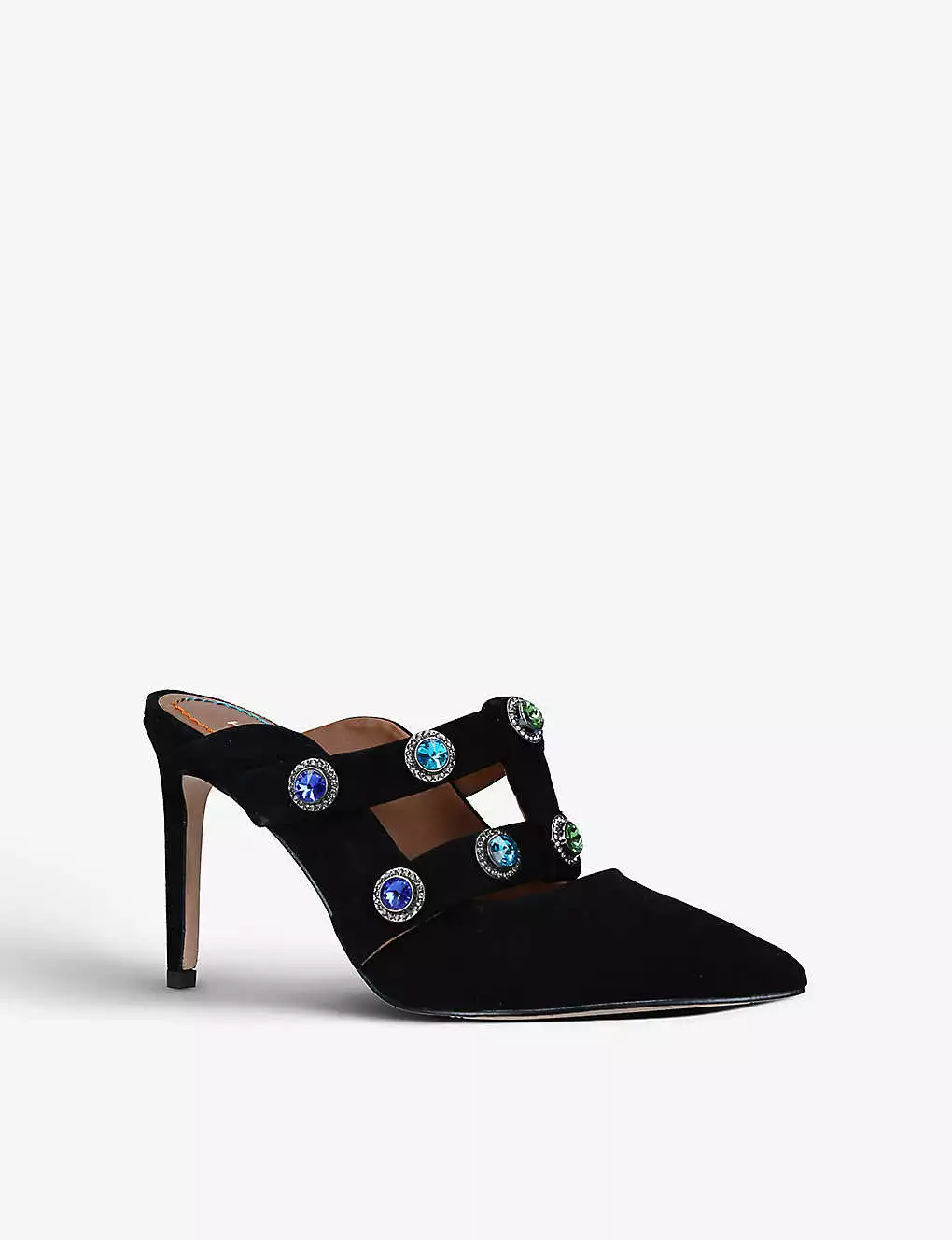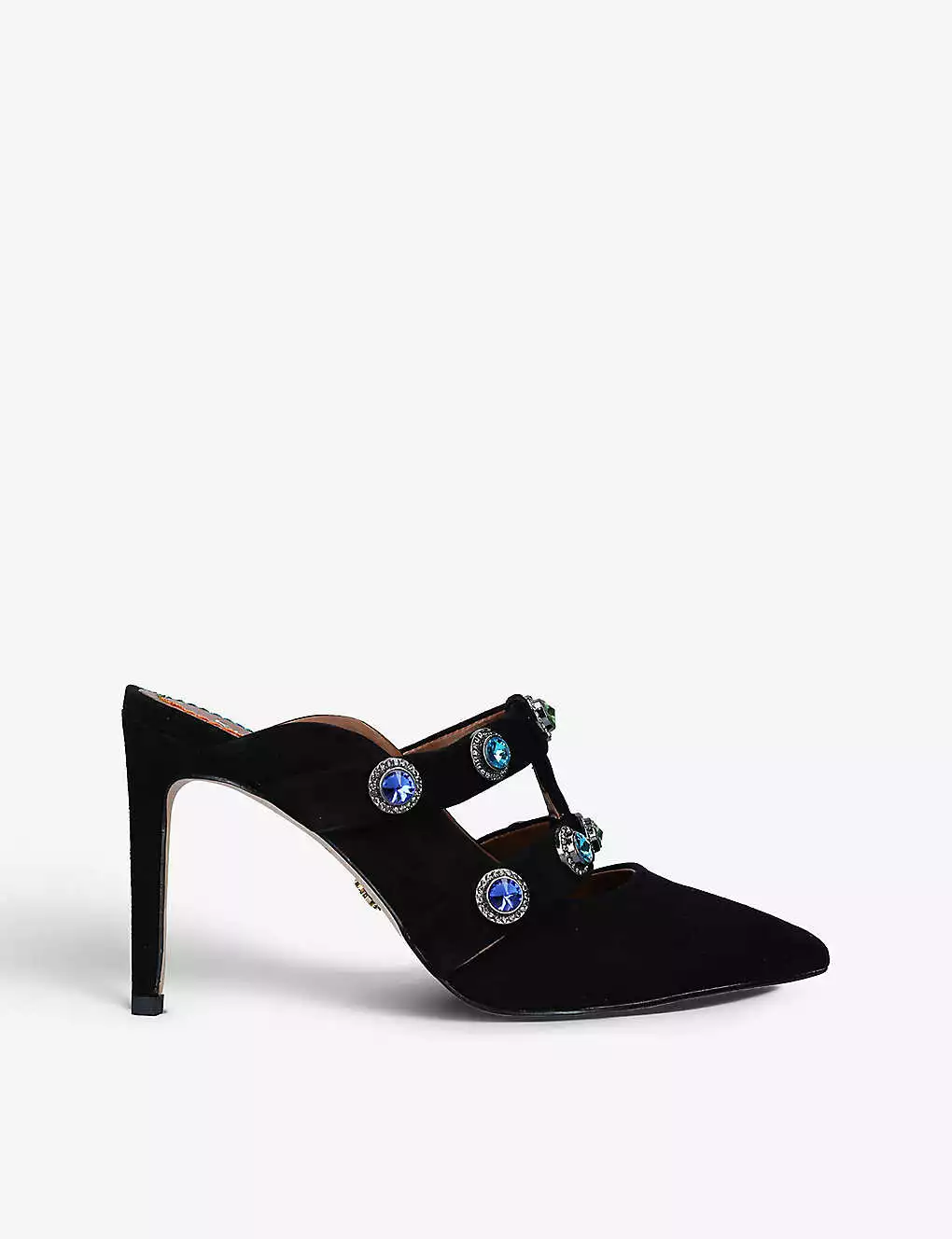 KURT GEIGER LONDON Octavia Gem-embellished Suede Heels For Womens Blk/other