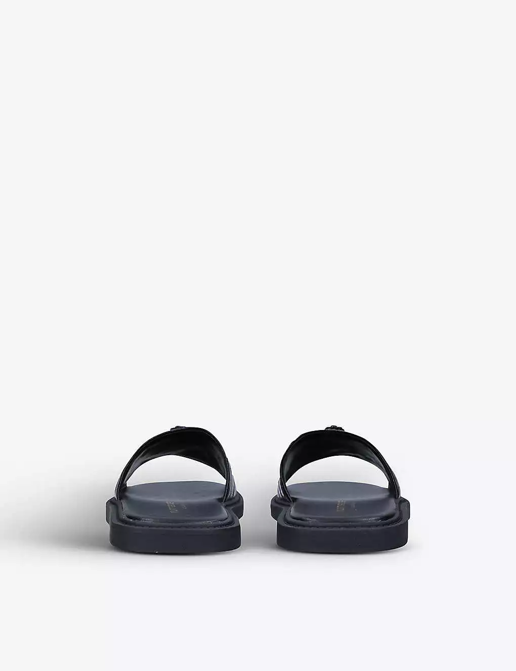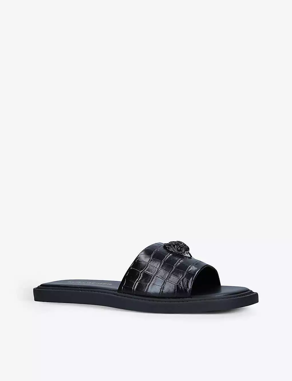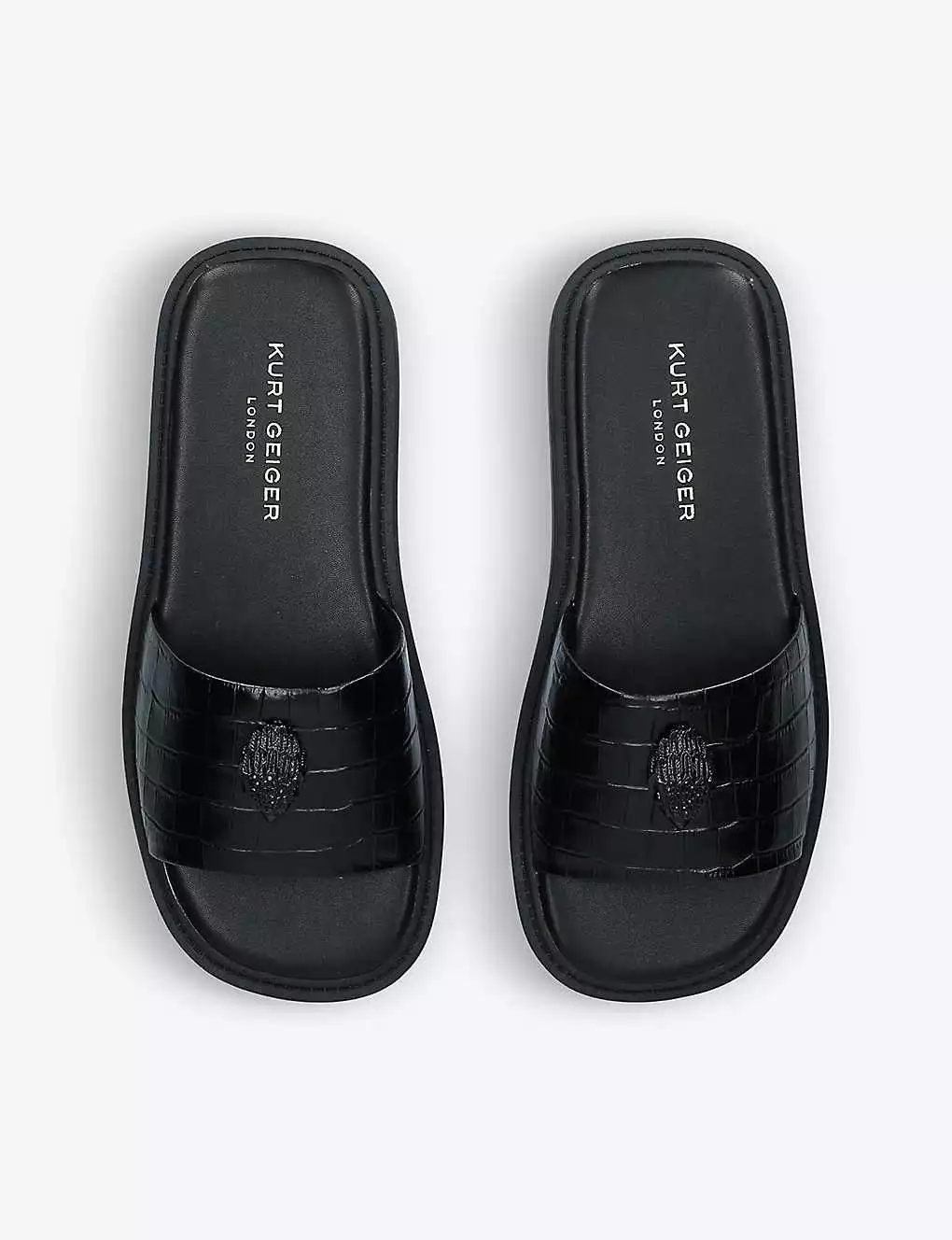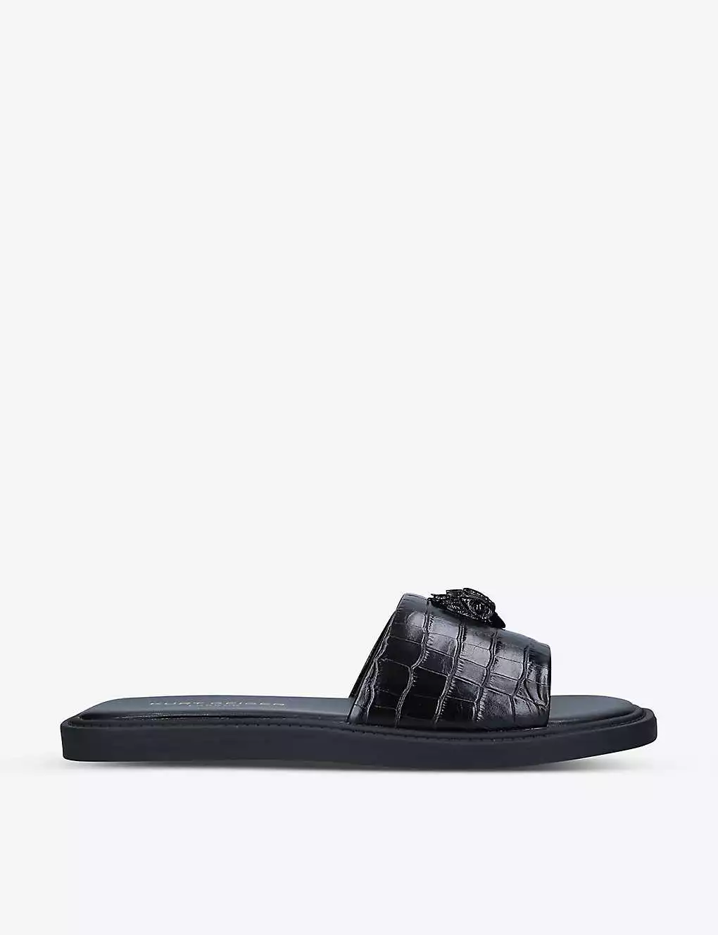 KURT GEIGER LONDON Oscar Eagle-embellished Croc-embossed Leather Sliders Black