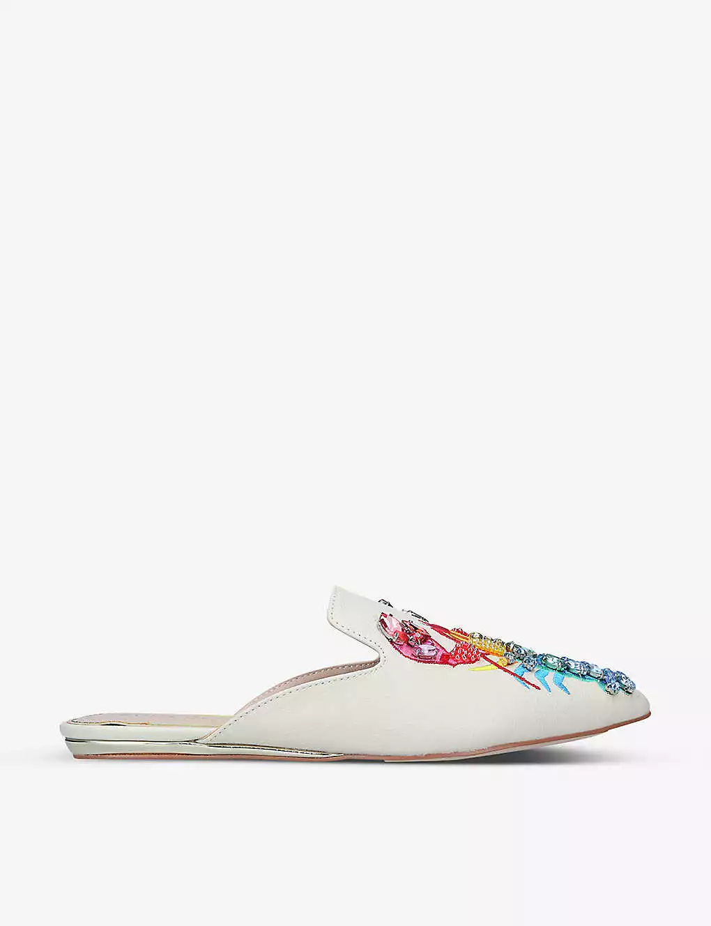 KURT GEIGER LONDON Otter Rainbow Lobster-embroidered Leather Mules For Womens White/comb