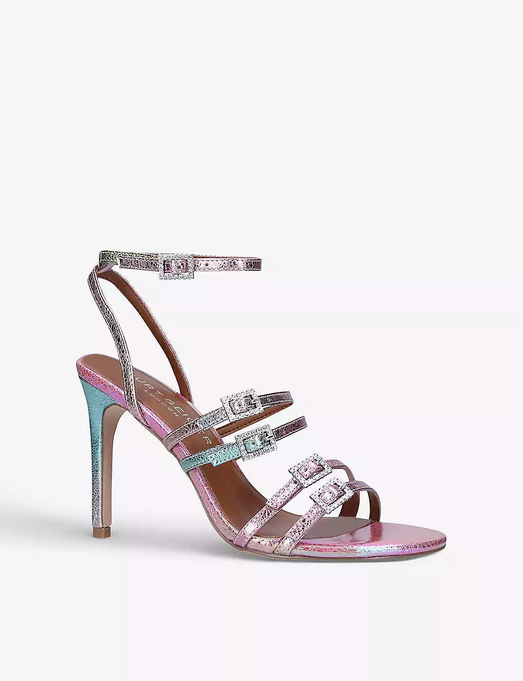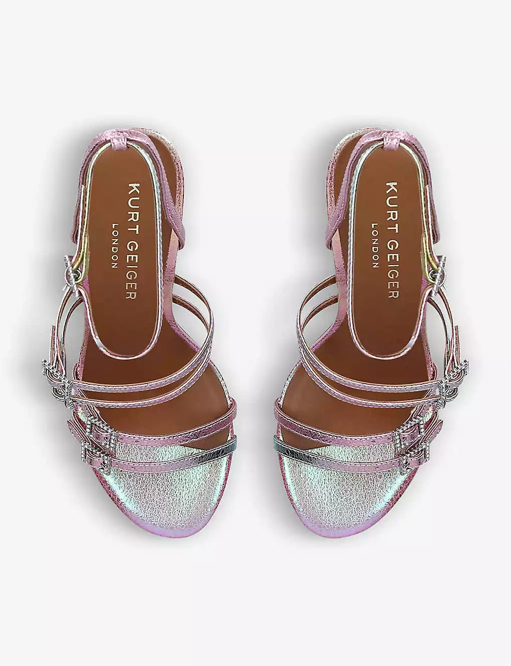 KURT GEIGER LONDON Pierra Gem-embellished Leather Heeled Sandals Pink Comb