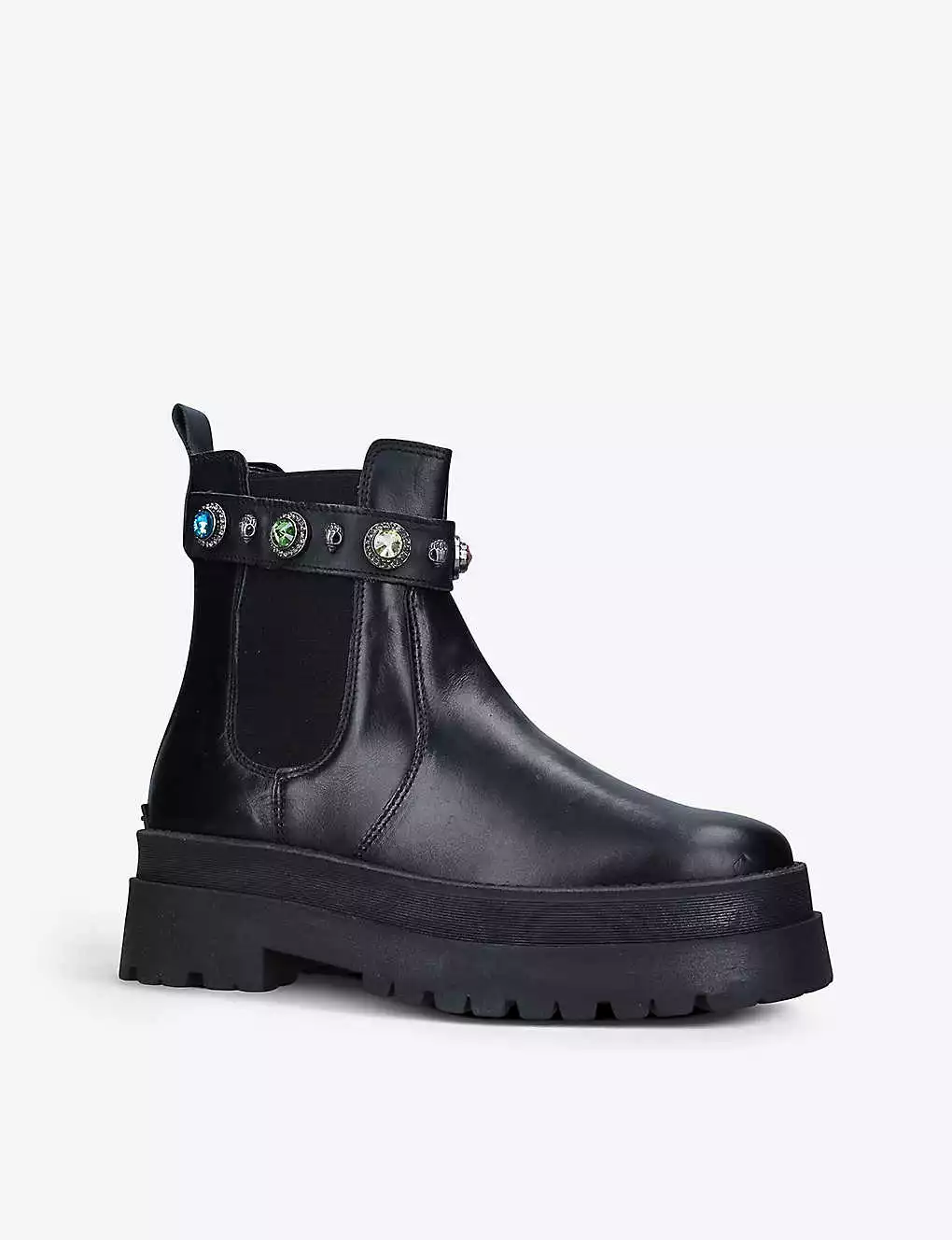 KURT GEIGER LONDON Sawyer Embellished Leather Chelsea Boots For Womens Black