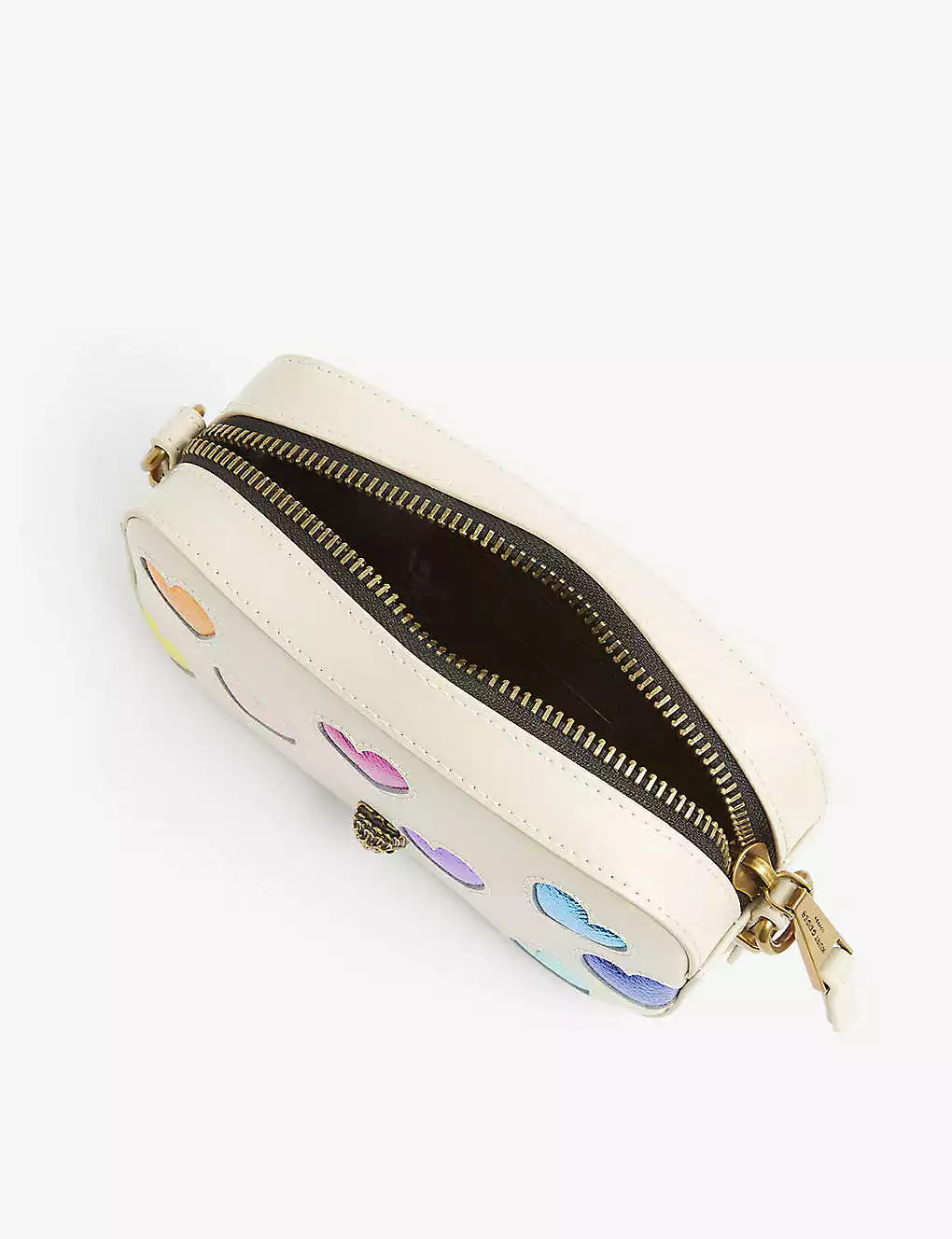 KURT GEIGER LONDON Shoreditch Metallic-heart Leather Camera Bag For Womens Bone