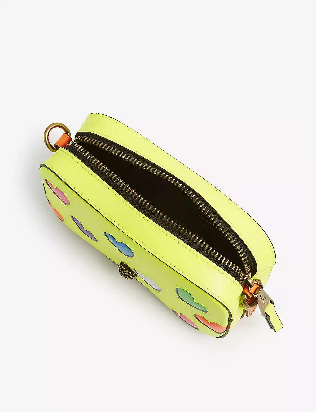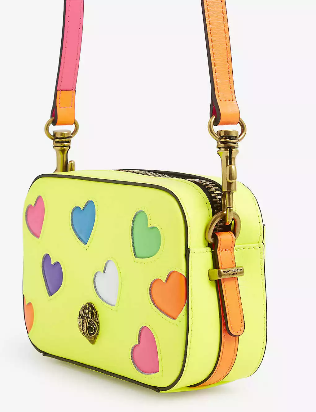 KURT GEIGER LONDON Shoreditch Metallic-heart Leather Camera Bag For Womens Yellow