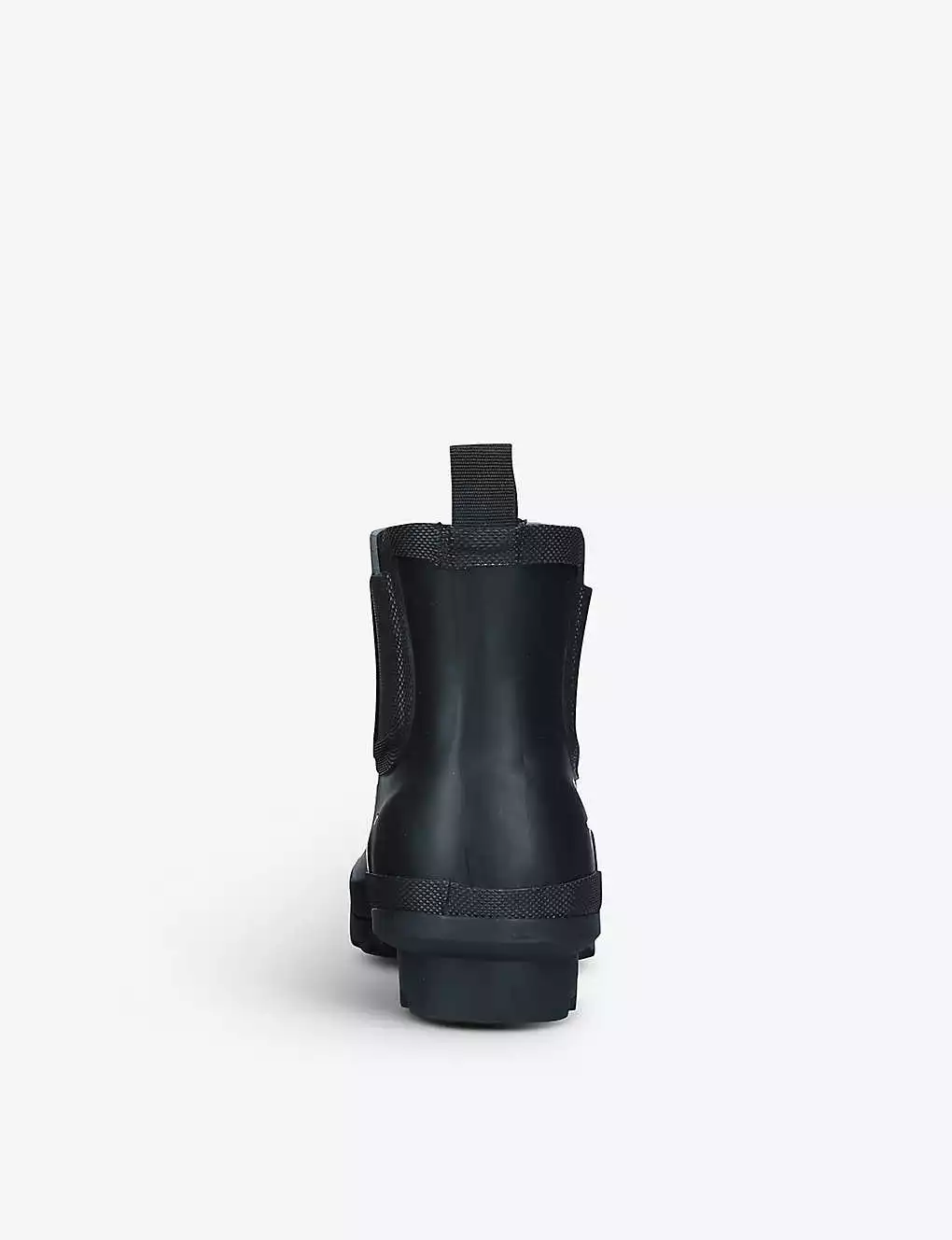 - Round toe, elasticated side gussets, branding patch to the front, pull-tab to the back, treaded sole