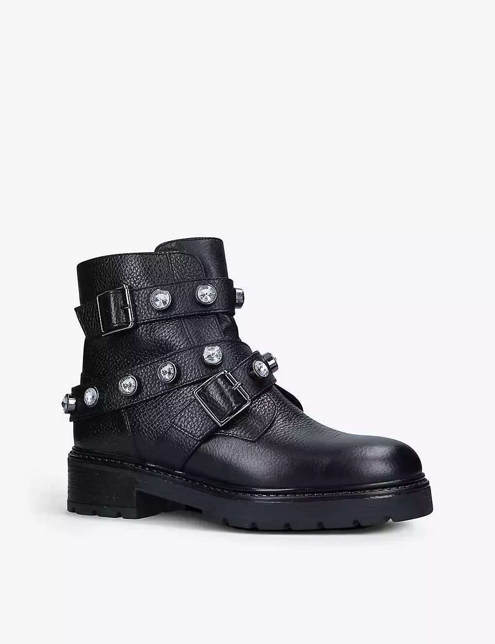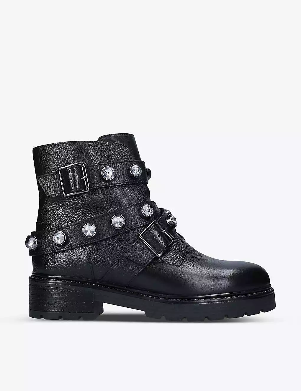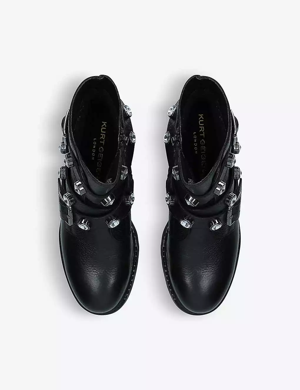 KURT GEIGER LONDON Stinger Crystals Leather Ankle Boots For Womens Black